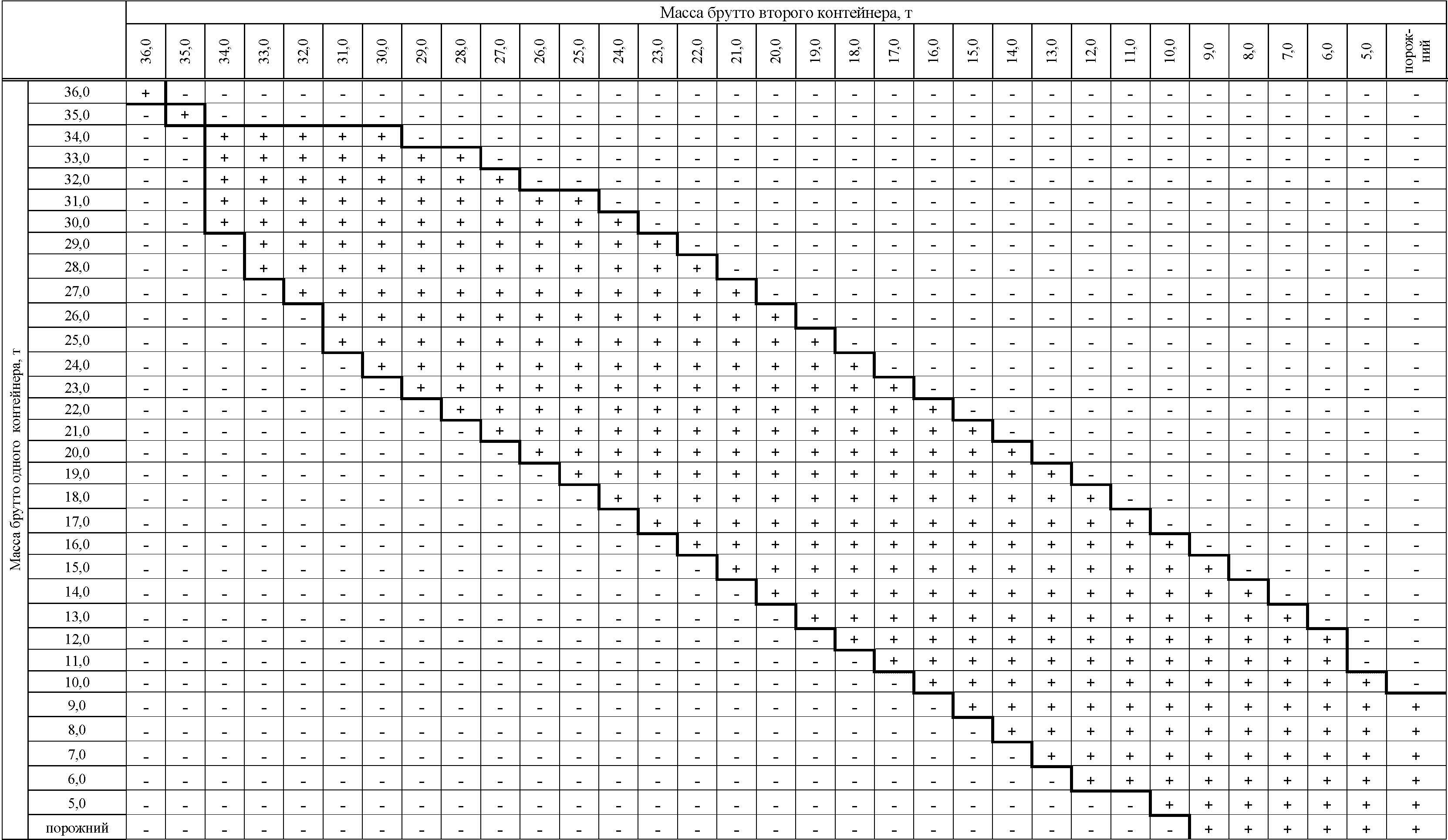 Допускаемые сочетания масс брутто контейнеров