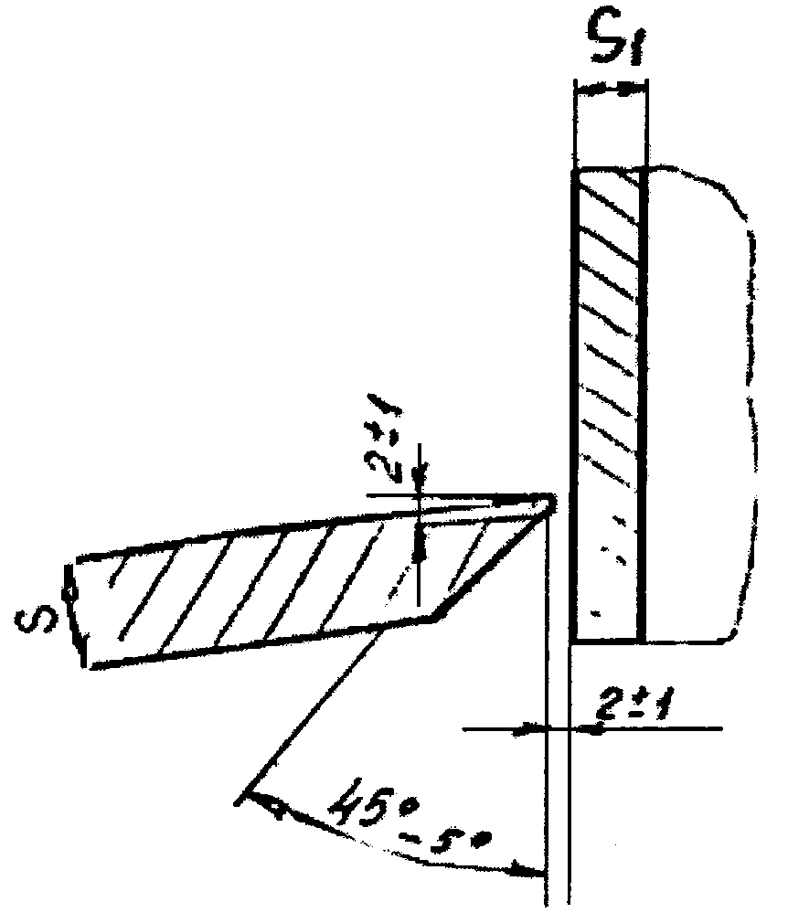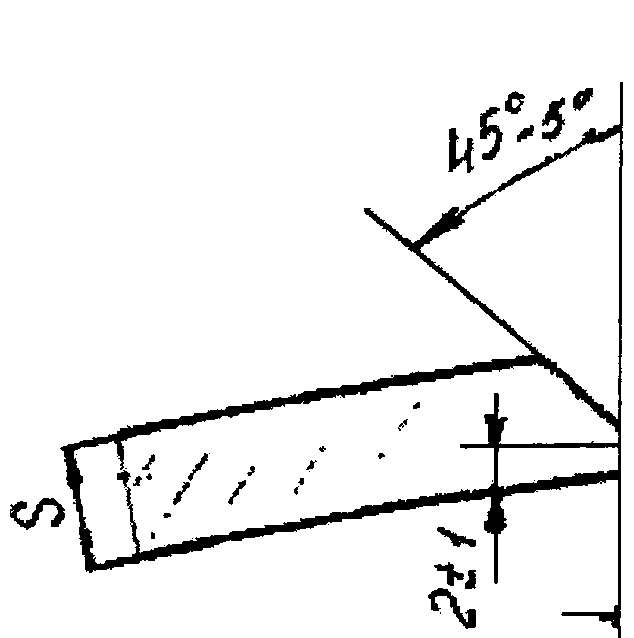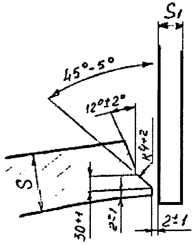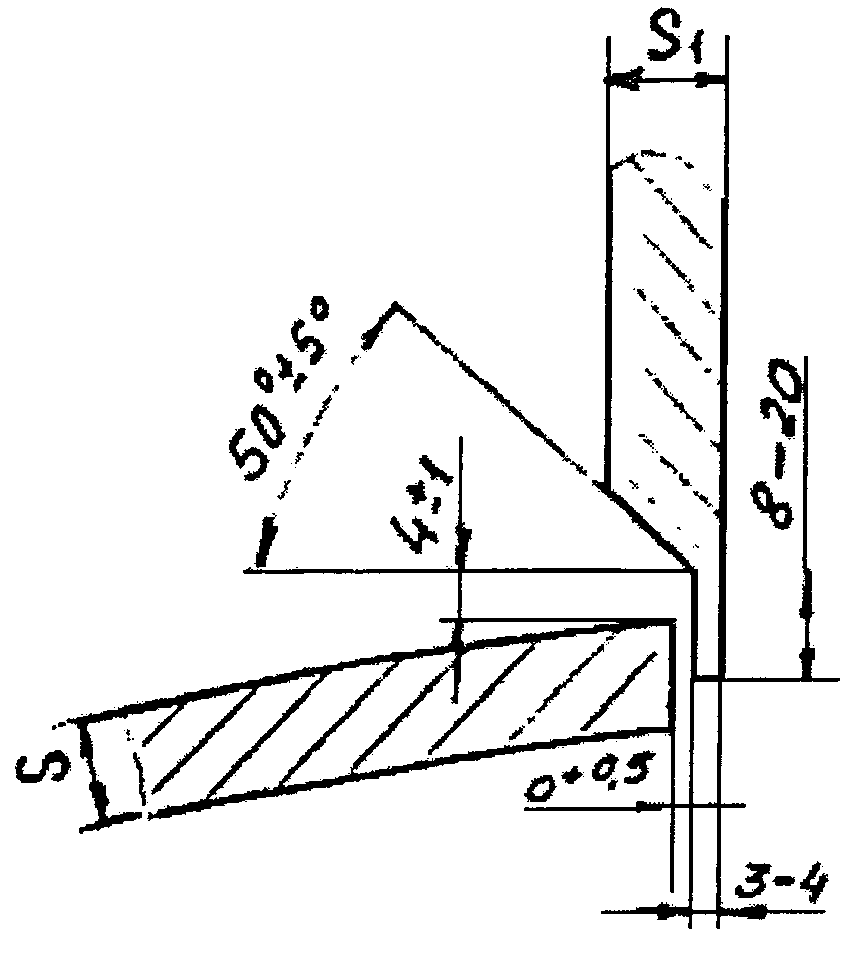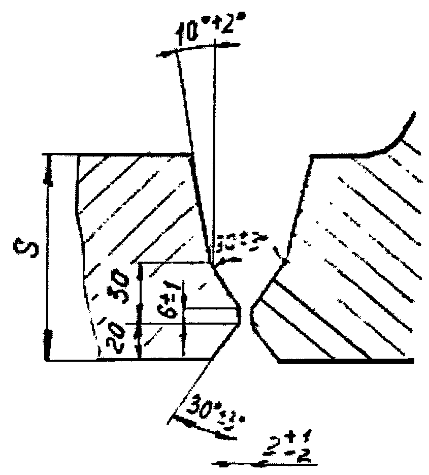 Толщина стенки сосуда или аппарата, S | 4 | 6 | 8 - 10 | 12 - 14 | 16 - 18 | 20 - 24 | 26 - 38 | 40 - 70 | 75 - 80 | 85 - 90 | 95 - 100 | 110 - 120 |