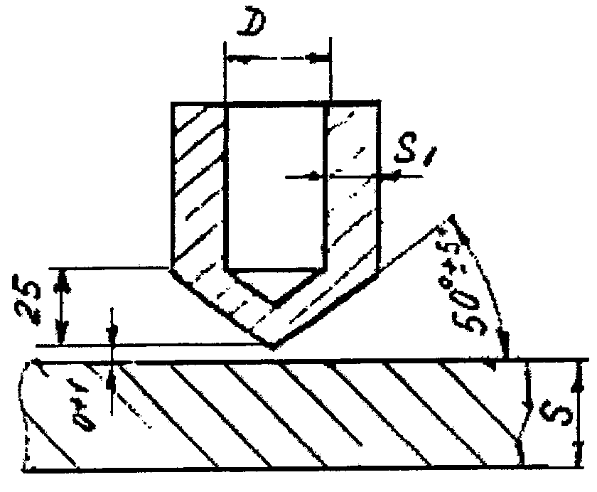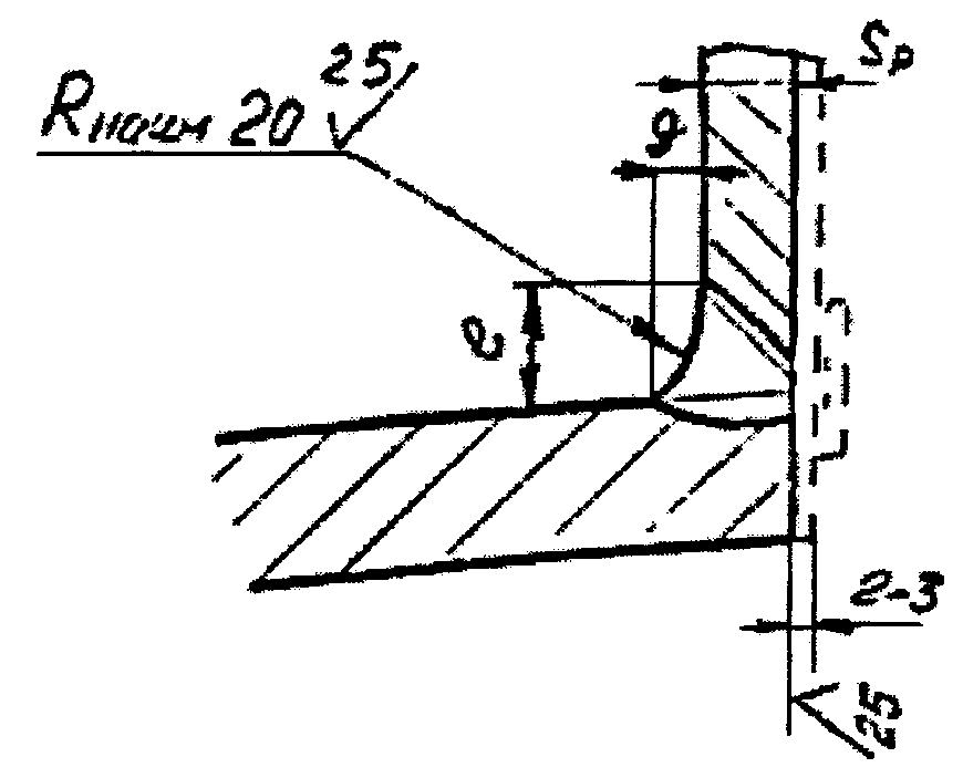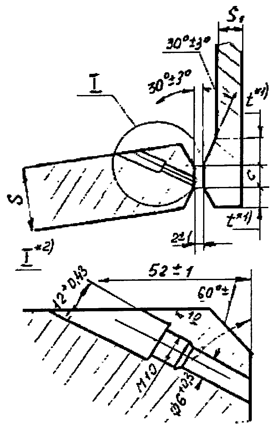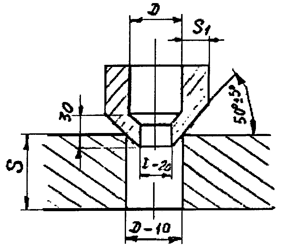 Толщина стенки сосуда или аппарата, S | 4 | 6 | 8 - 10 | 12 - 14 | 16 - 18 | 20 - 24 | 26 - 38 | 40 - 70 | 75 - 80 | 85 - 90 | 95 - 100 | 110 - 120 |