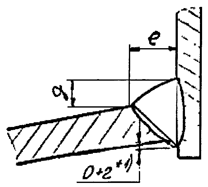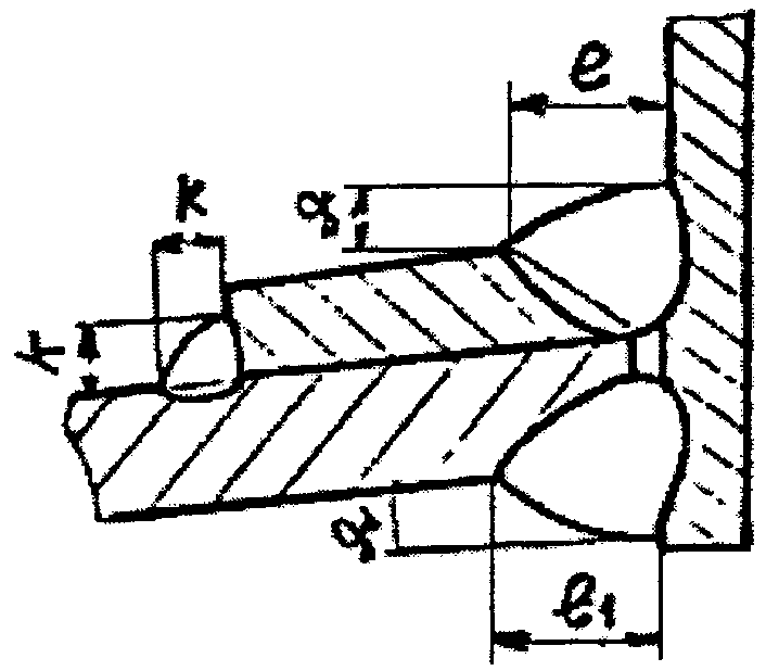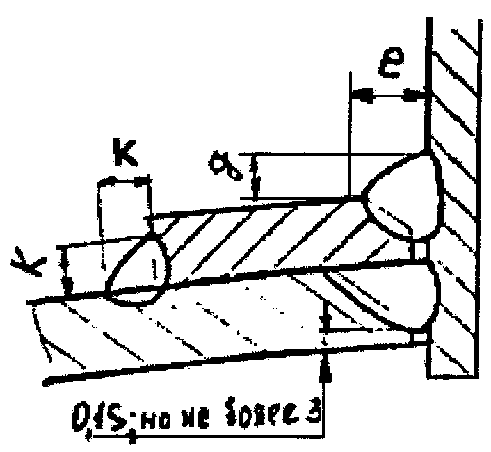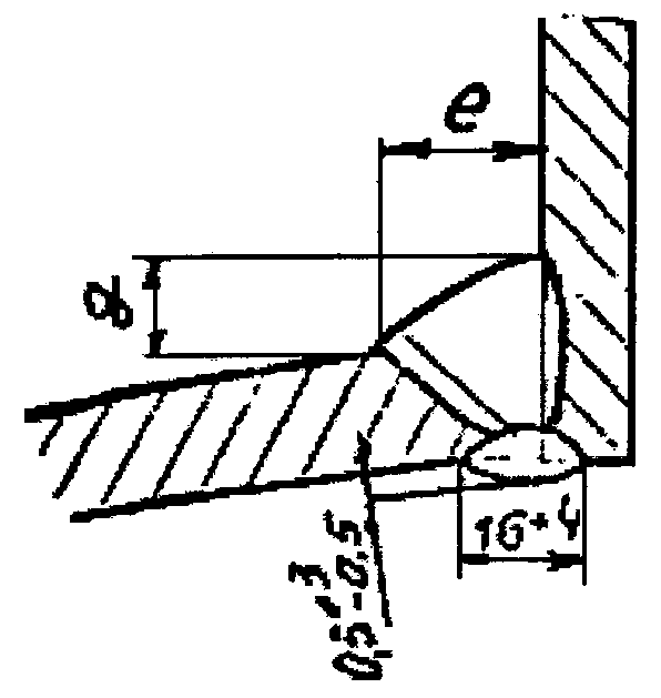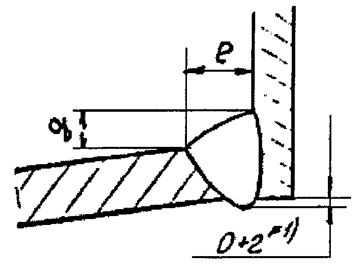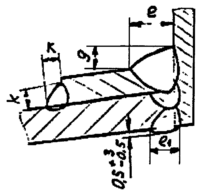 Условное обозначение шва сварного соединения | Конструктивные элементы | e, не более | k, не более | g (пред. откл. + 2) | ||