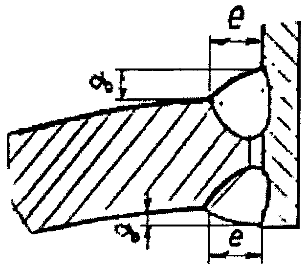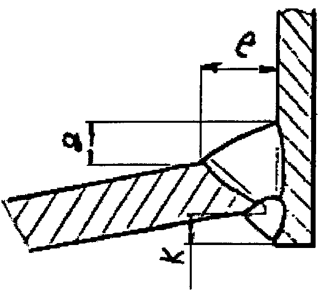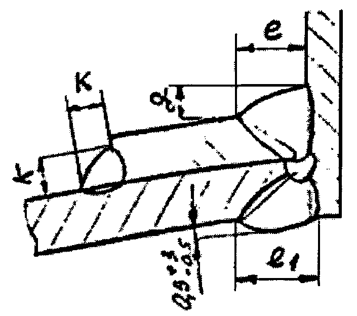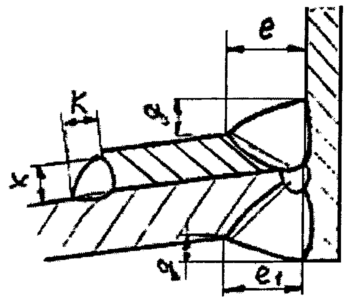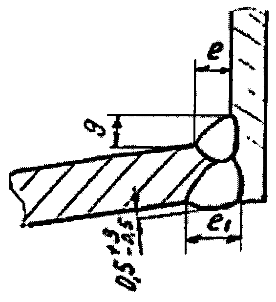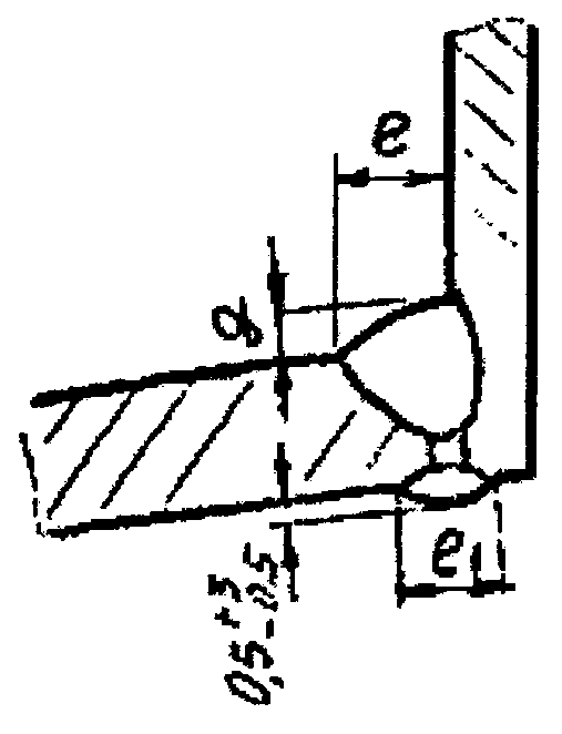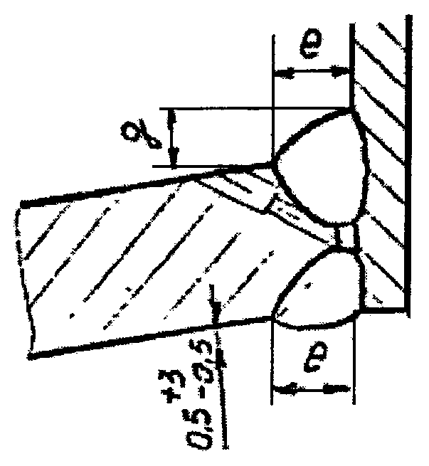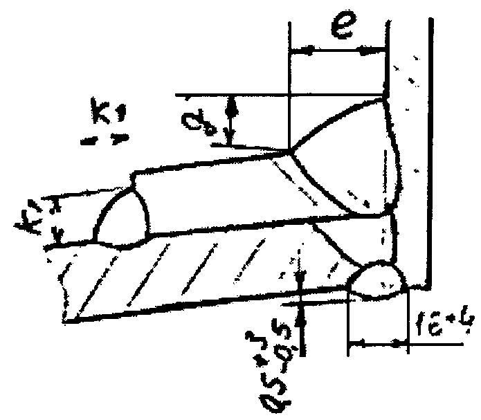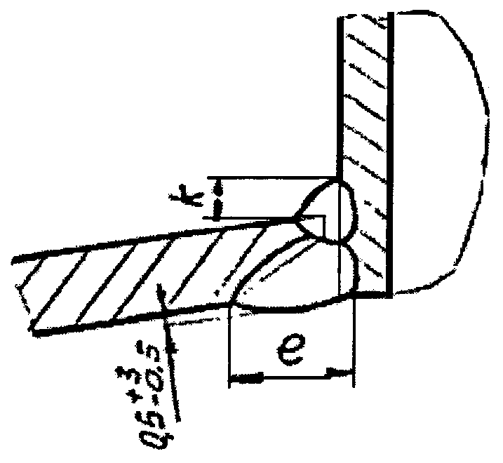 Условное обозначение шва сварного соединения | Конструктивные элементы | e, не более | k, не менее | g (пред. откл. + 2) | ||