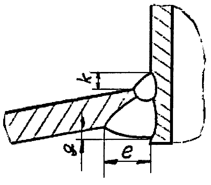 Условное обозначение шва сварного соединения | Конструктивные элементы | e | k, не менее | g (пред. откл. + 2) | |||