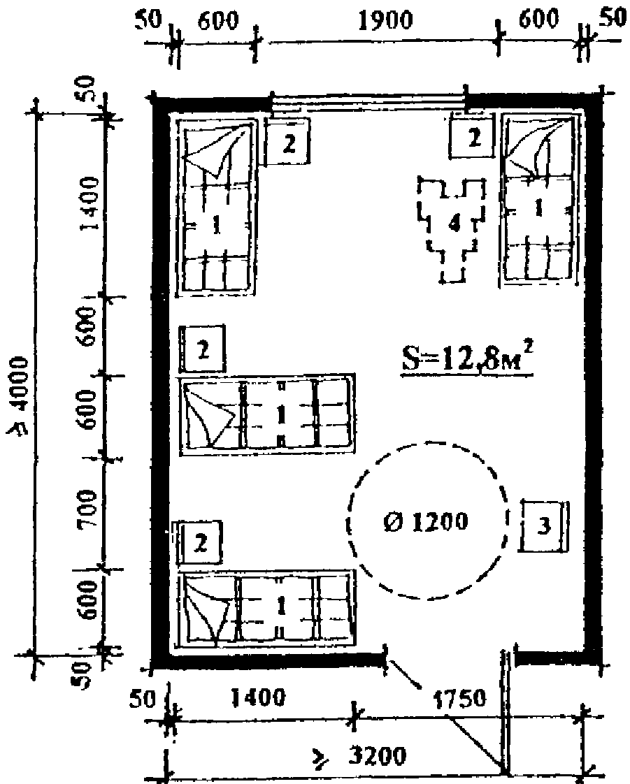 4.10. Оптимальной вместимостью СРЦ является 100 мест, в том числе: 50 мест - проживающие, 50 мест - дневного пребывания.