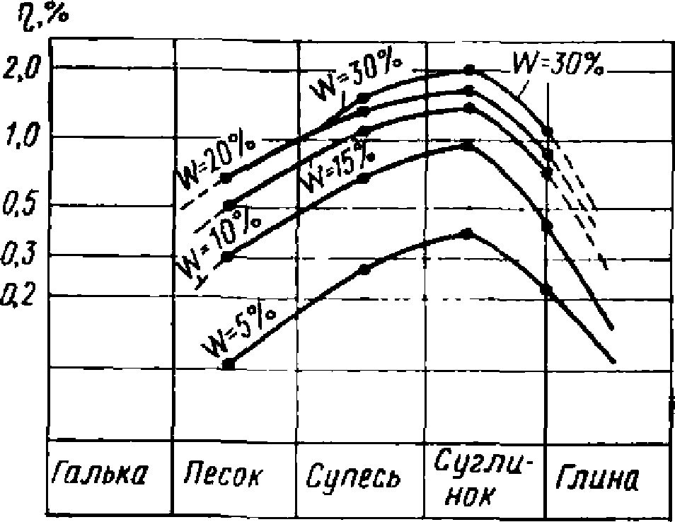 рис. 1. Там же представлена зависимость УЭС талых рыхлых пород от их состава и влажности при нормальной минерализации воды (