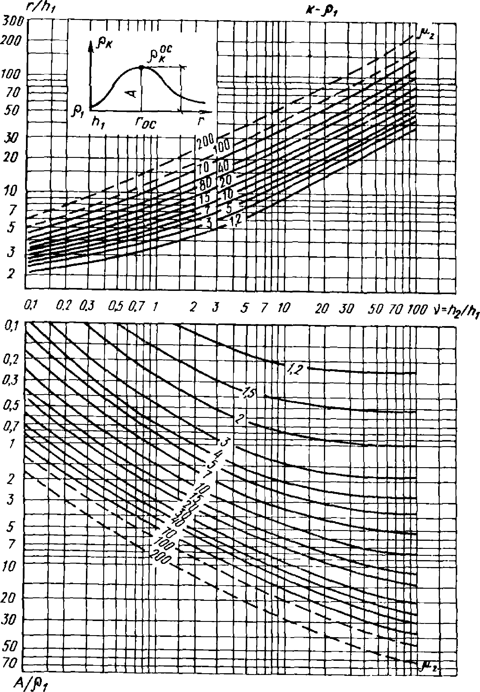 Интерпретация ЭП МДС выполнялась с использованием соответствующих номограмм, по которым определялось простирание, глубина залегания и угол падения крутопадающих геоэлектрических границ.