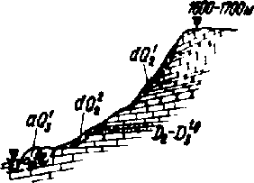 Б | Ступенчато-вогнутые | Верхнечетвертичные и современные | 900 - 980 м | Вверху 65 - 75°, внизу 18 - 22° | Водообильные дожди вызывают осовы в обломочных образованиях | Опираются на первую надпойменную террасу |