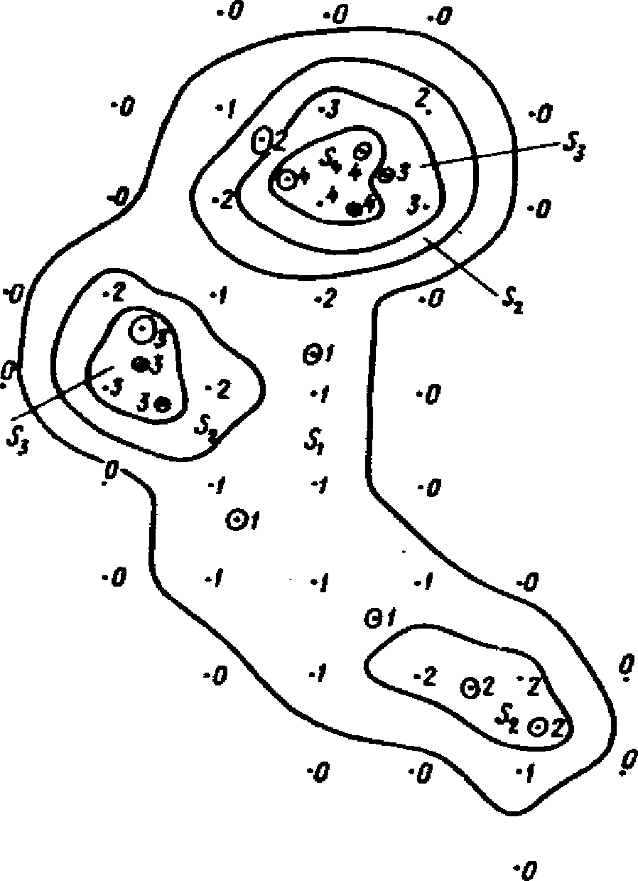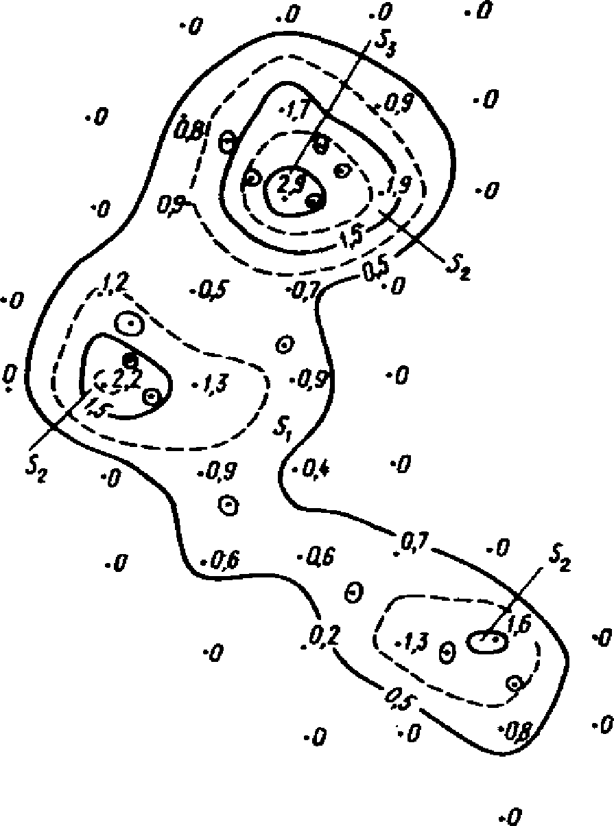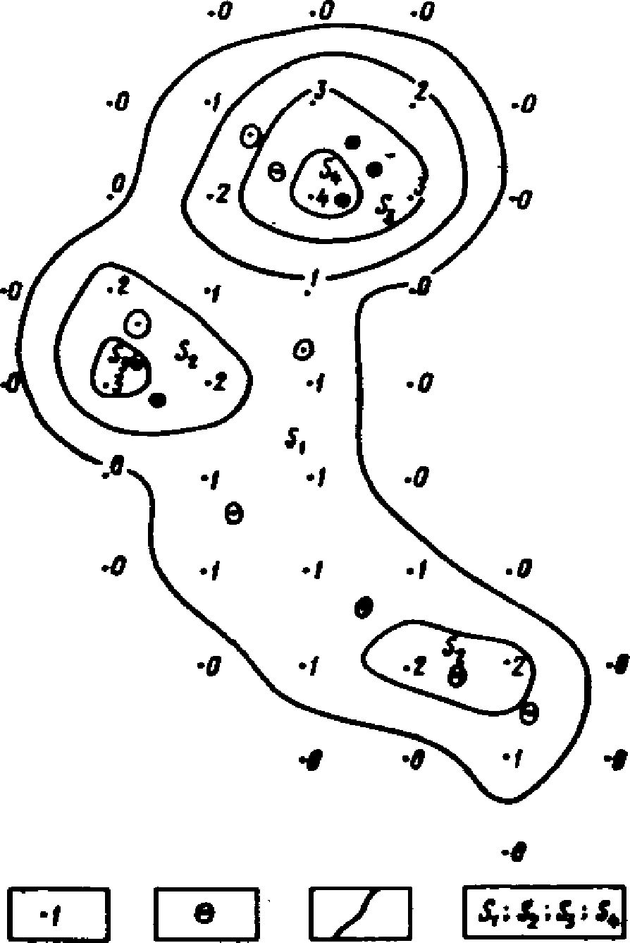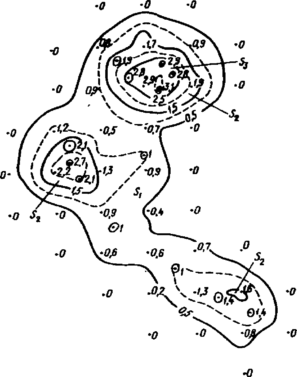 Если степень геологической изученности территории такова, что позволяет выделить участки, однородные по основным геологическим условиям, влияющим на образование провалов, то необходимо определить границы этих участков, рассчитать для них среднее значение интенсивности провалов, а затем в пределах каждого участка трансформировать поле провалов в поле их плотности.