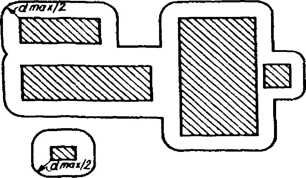 Если в пределах участка, однородного по основным геологическим условиям, влияющим на образование провалов, существуют зоны, характеризующиеся нулевым значением плотности, хотя образование провалов в них возможно, то выбирают такой радиус кружка, чтобы любая точка участка характеризовалась бы каким-либо значением плотности провалов, отличным от нуля. Эта операция сравнительно легко выполняется методом подбора.