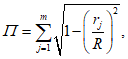 Для детального определения конфигураций границ с разной плотностью зон рекомендуется следующий метод трансформации поля провалов в поле их плотности. На карту наносят квадратную сеть точек измерений плотности с выбранным расстоянием l, в каждую точку помещают центр кружка радиусом R, определяют количество провалов в пределах кружка, расстояние от точки измерения до центра провалов и рассчитывают значение плотности в точке измерения по формуле