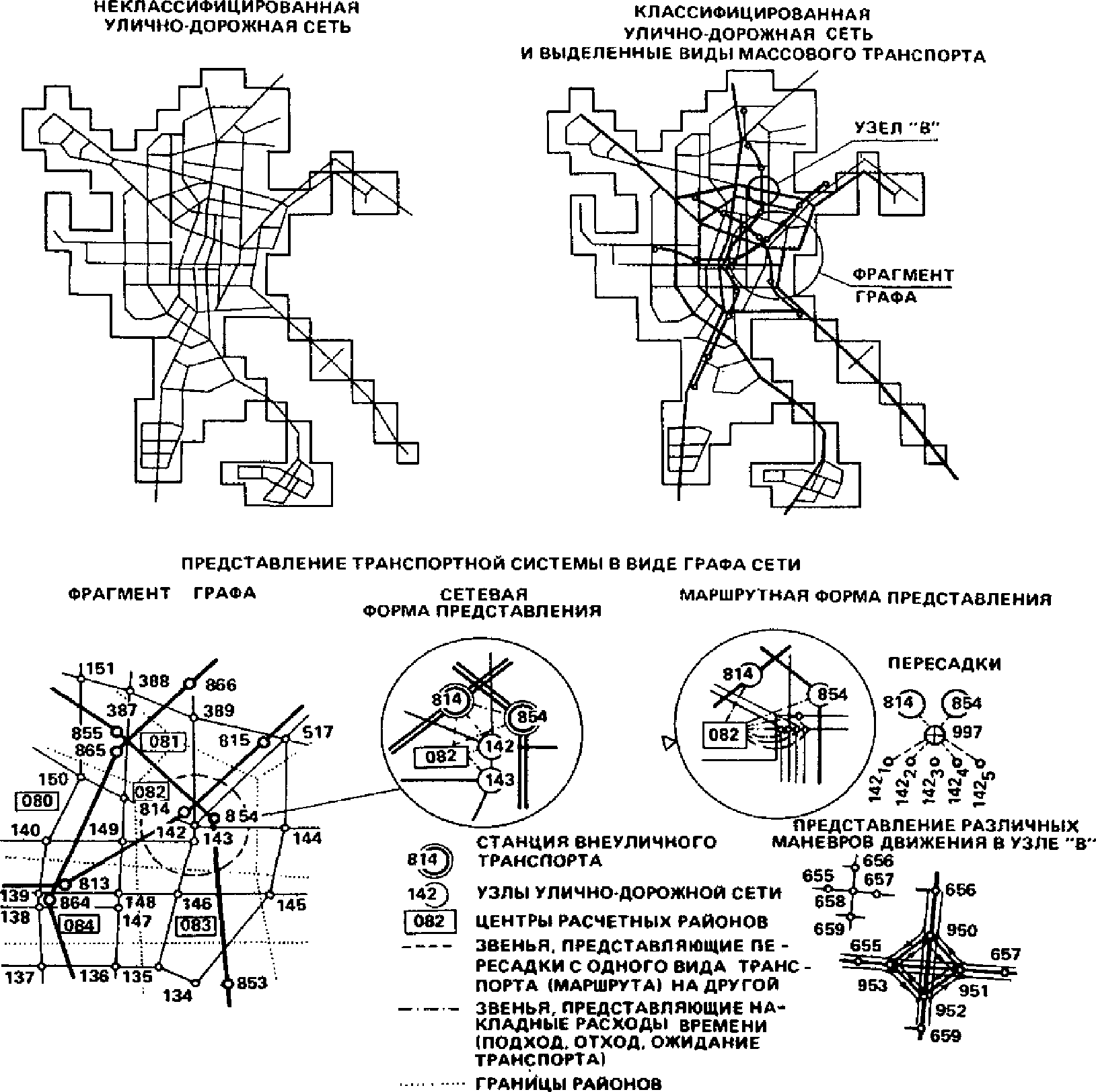 сети, представляющей сложные транспортные узлы вместе со схемой организации движения в них.