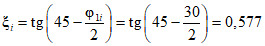 fi = 2,55 x 0,577 x 1,0 x tg 30° + 0,5 = 1,35 тс/м2.