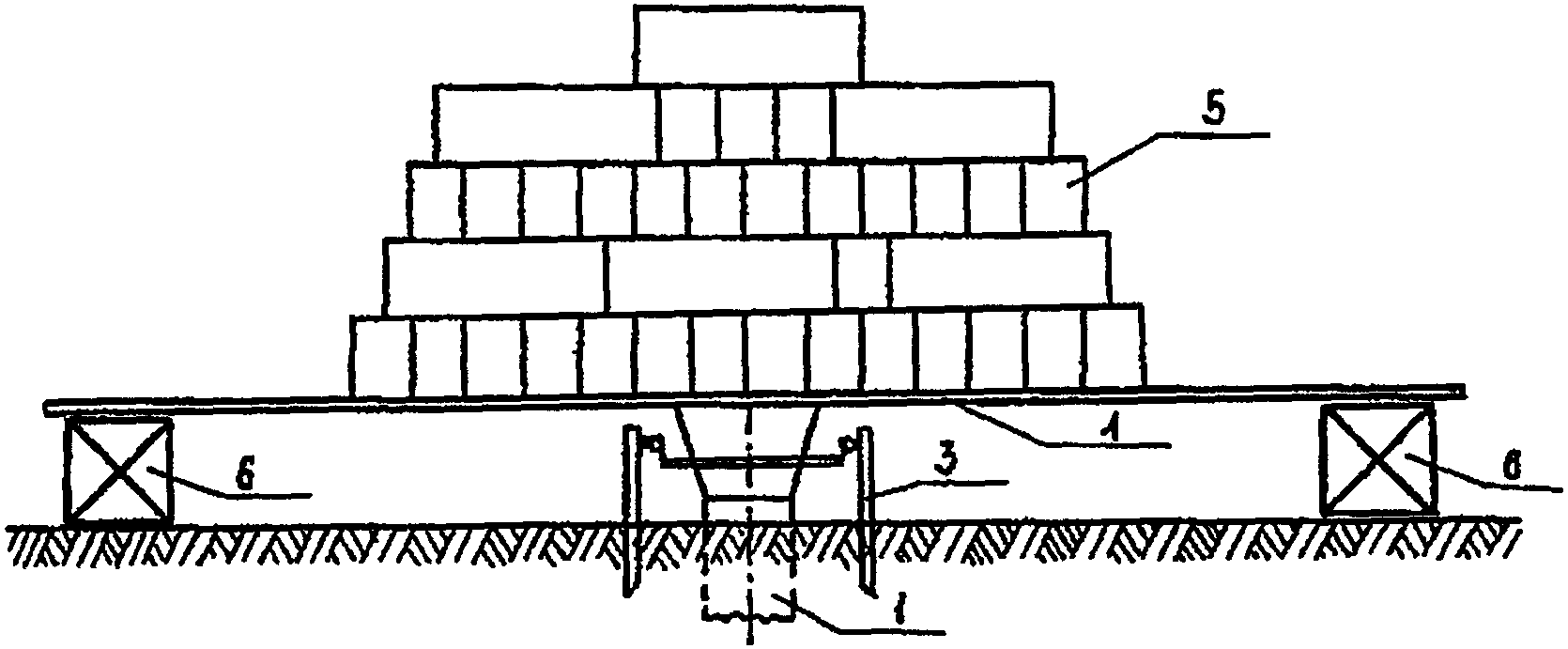 (рис. 3). Грузовую платформу закрепляют металлическими тяжами к анкерным сваям, которых должно быть не менее 4. Нагружение пробных свай производят ступенчато-возрастающей нагрузкой в соответствии о методикой ГОСТ 5686-78*. Для загружения грузовых платформ используют любой тарированный груз, например металлические или бетонные блоки.