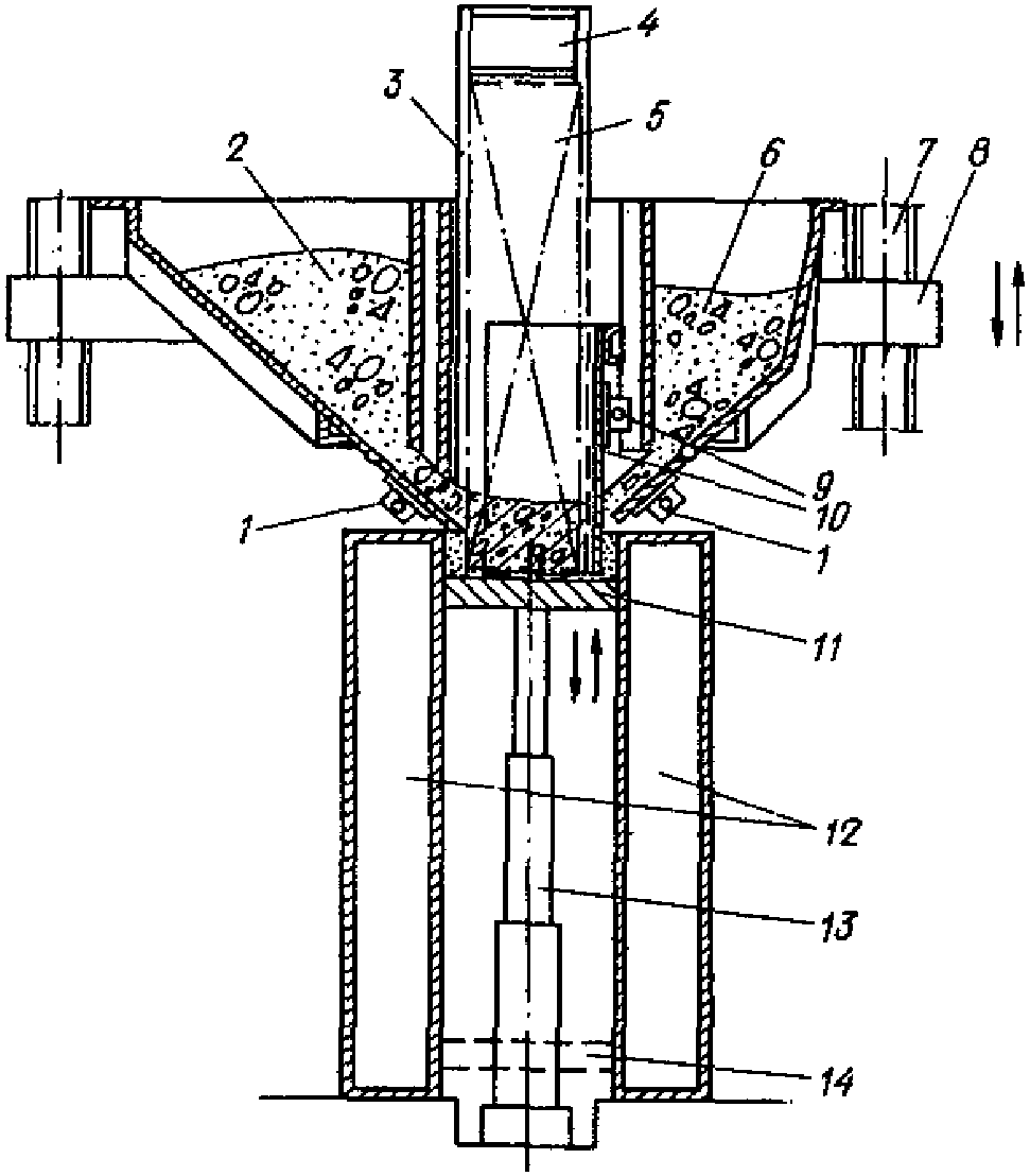 6 - бункер конструктивного бетона; 7 - вибраторы;