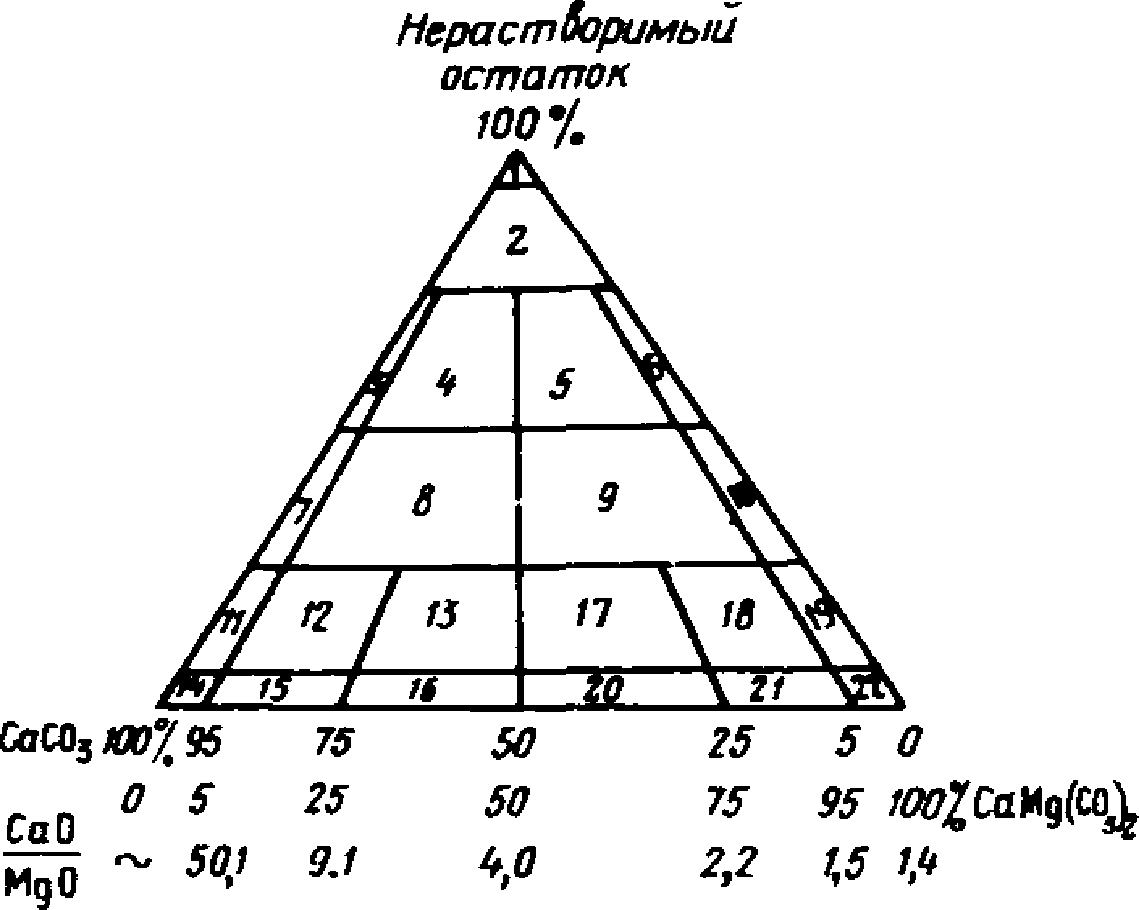 Результаты анализа соляно-кислой вытяжки выражают в двух формах: окисной - CaO, MgO, SO3, CO2, R2O3, Re2O3, Al2O3 и солевой (гипотетический состав) - CaCO3, MgCO3, CaSO4, 2H2O.