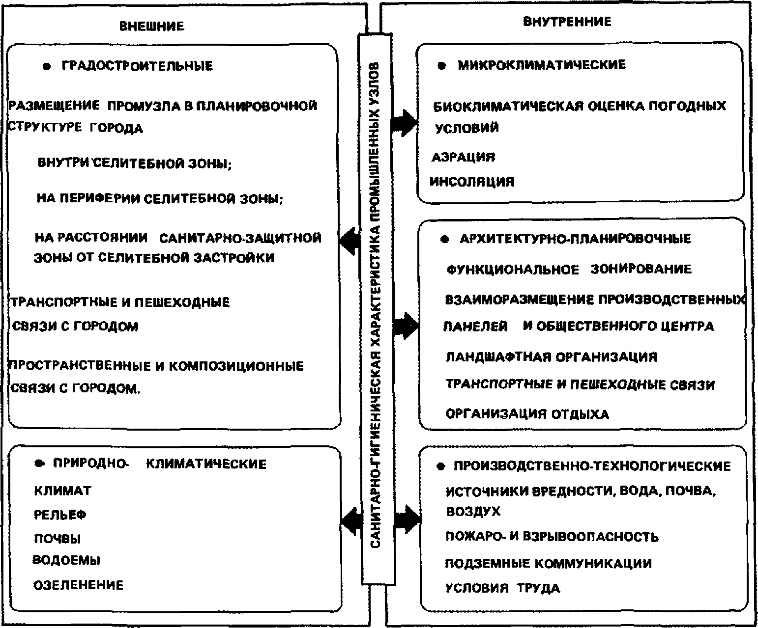 номенклатуру предприятий, входящих в состав промышленных узлов с учетом фактора их "совместимости" по санитарно-гигиеническим и архитектурно-планировочным признакам.