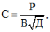 B - ширина шины колеса или обода, см;