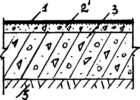 А | | 1 - упрочненный слой; 2 - упрочняемое покрытие, являющееся одновременно подстилающим слоем, в том числе из вакуумированного бетона; 2' - упрочняемое покрытие, в том числе из вакуумированного бетона; 3 - подстилающий слой; 4 - плита перекрытия; 5 - грунт основания |