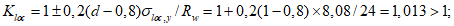 в расчете коэффициент Kloc не учитывается. Касательное напряжение