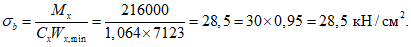 п. 4.2. Нормальные напряжения от изгиба в верхнем поясе