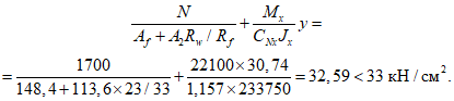 формула (33) СНиП II-23-81 удовлетворяется, устойчивость стенки обеспечивается проверкой по