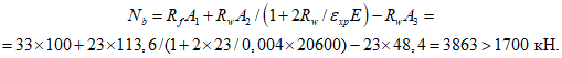 - если продольная сила N > 0,7 (RfAf + A2Rw).
