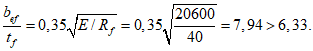 bef/tf = 16,5/1,5 = 11,79 < 14,41 (см.