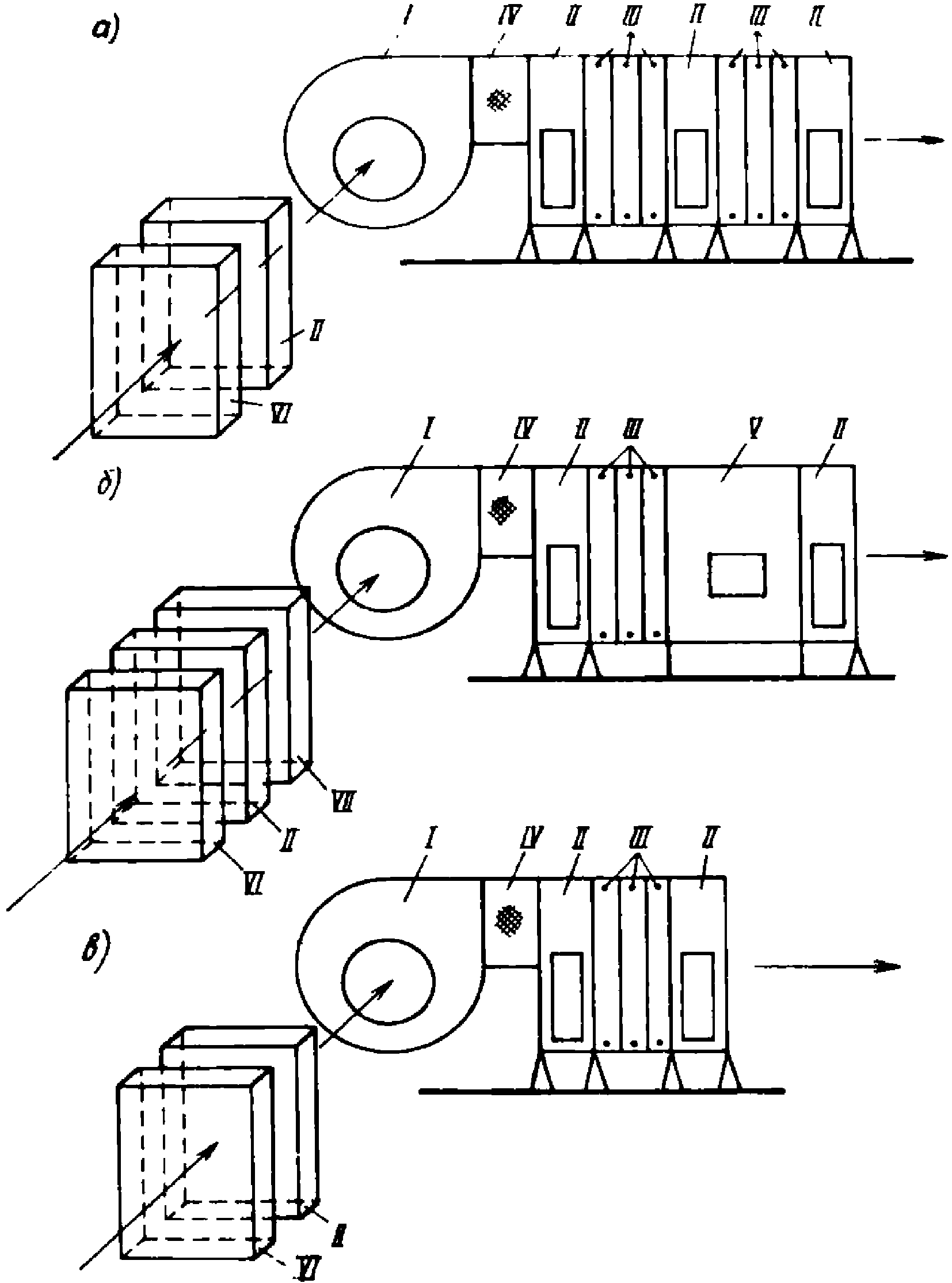 воздушный; V - фильтр; VI - теплообменники
