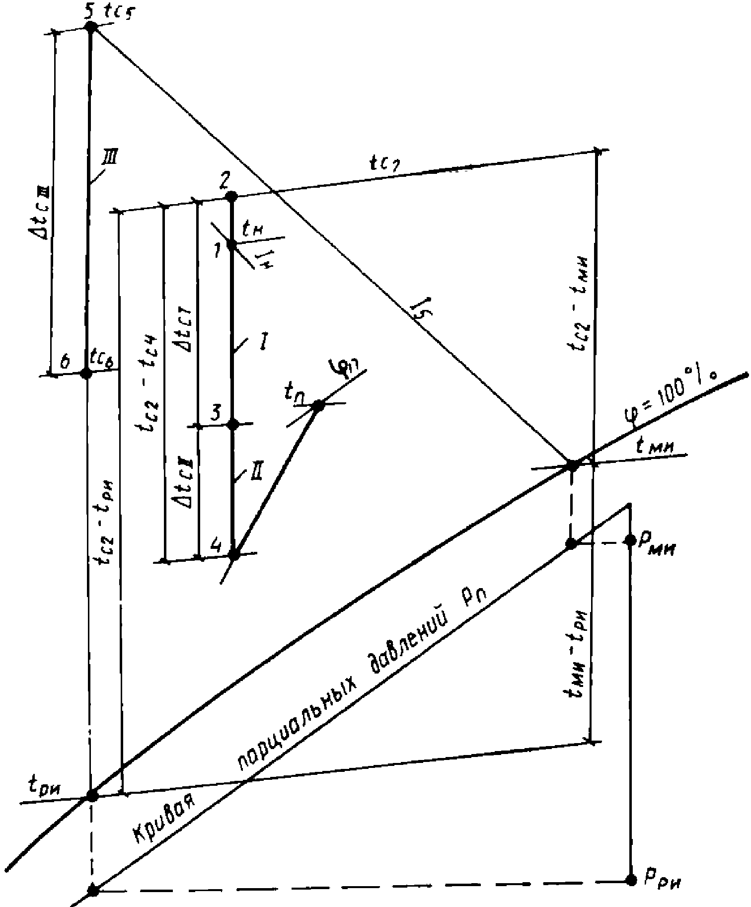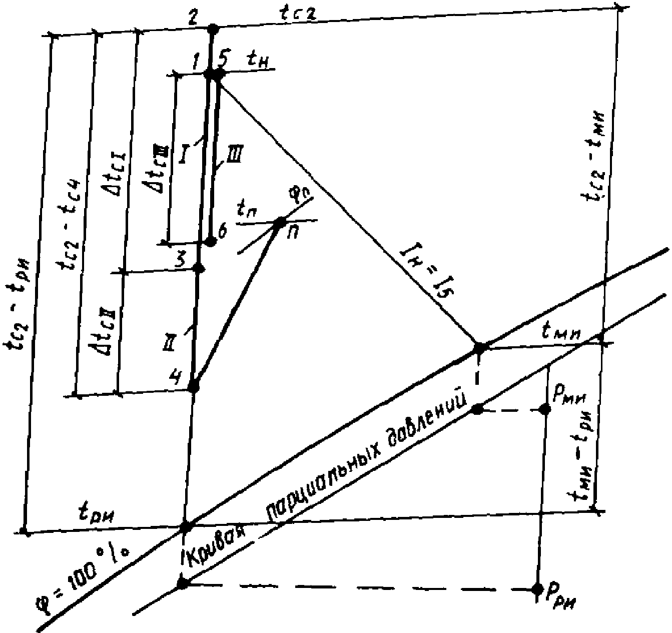 П1) и воздухом в помещении (точка