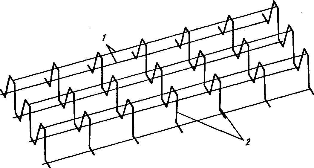 1.2. Арматурный каркас вышеупомянутых конструкций состоит из прямых продольных и волнообразно изогнутых поперечных стержней, объединенных в пространственную конструкцию с помощью сварки. Принципиальная схема каркаса показана на рис. 1.