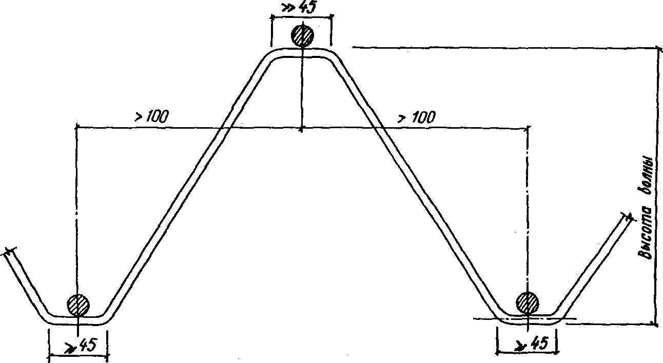 3.8. На вершинах волн следует предусматривать прямые участки-площадки. Длина прямых участков может приниматься не менее 45 мм.