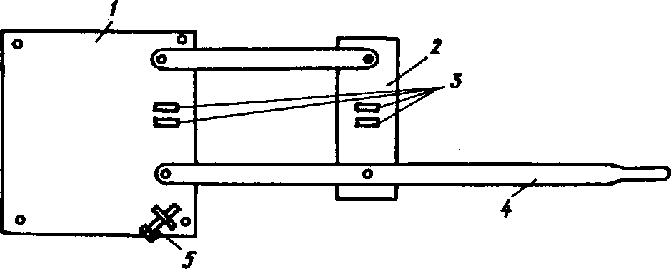 плита; 3 - упоры; 4 - рукоятка; 5 - регулируемый