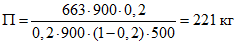 З = 1100 - 1,15 x 380 = 1100 - 437 = 663 кг.