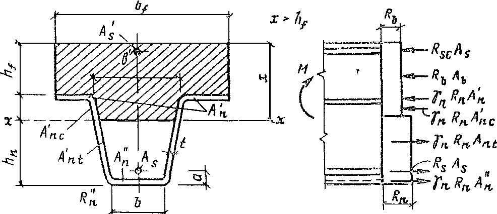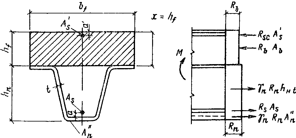 a, a' - расстояния от равнодействующей усилий в стержневой арматуре соответственно в растянутой и сжатой зонах до ближайшей грани сечения