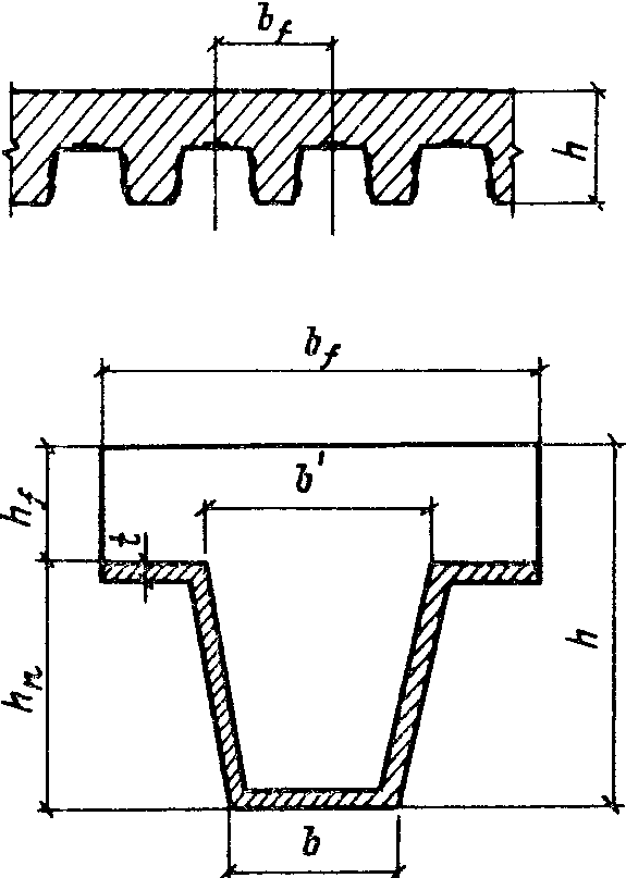 - ширина полки таврового сечения плиты, ширина одного гофра стального профилированного настила