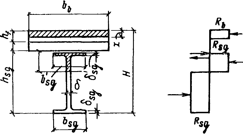 - рабочая высота сечения, равная расстоянию от сжатой грани бетона до равнодействующей усилий растяжения в стальном профилированном настиле и стержневой арматуре