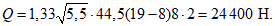 Q = 1,3·1·235·90·0,715 + 0,3·38 000 =