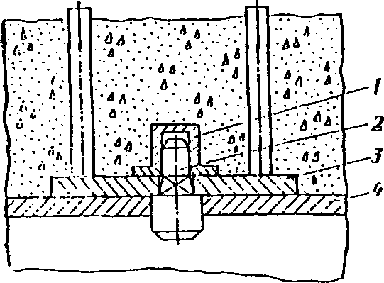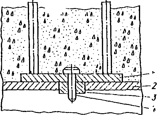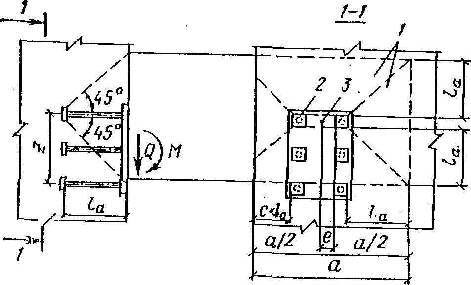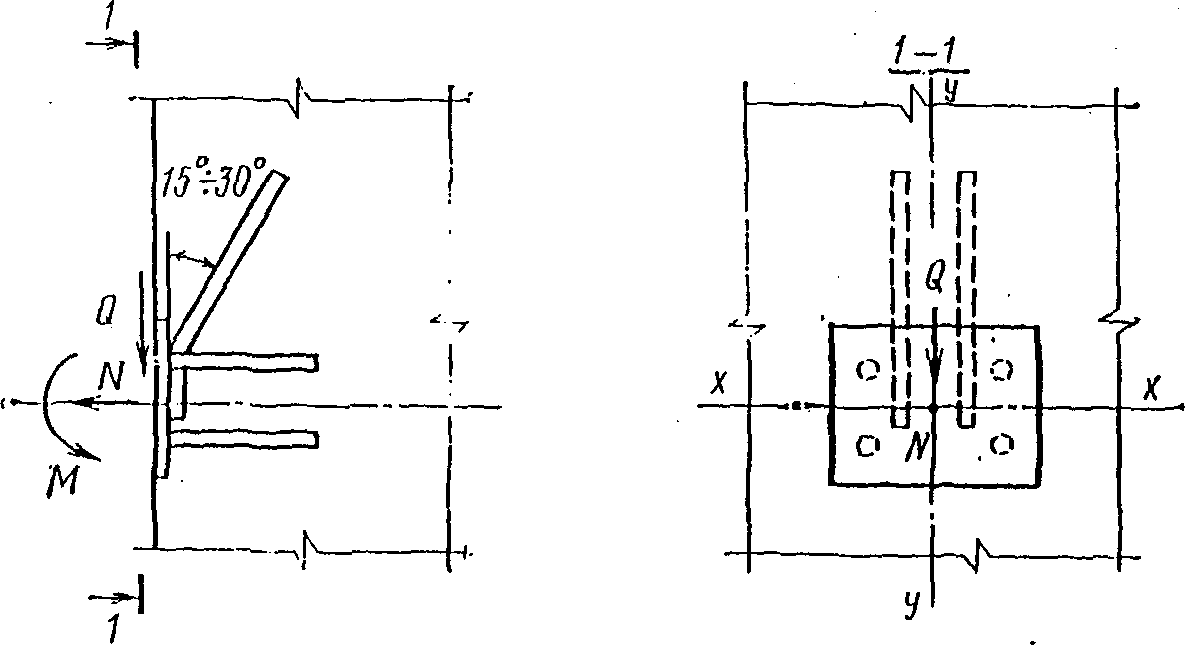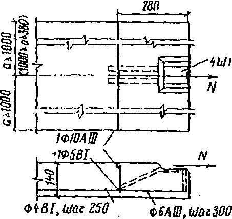 (рис. 3) рекомендуется проектировать при действии на деталь больших знакопостоянных и знакопеременных нагрузок, когда нельзя применить детали с анкерными стержнями. Такие закладные детали проектируются на основе экспериментальных данных.