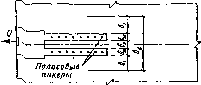 Расчет производим следующим образом. 1. По прочности на раскалывание бетона полосовыми анкерами - по