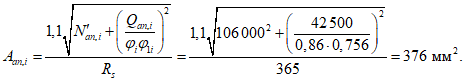 Aan | - | площадь поперечного сечения нормальных анкеров наиболее напряженного ряда; |