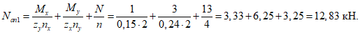 Nan | - | наибольшее растягивающее усилие в одном ряду нормальных анкеров; |