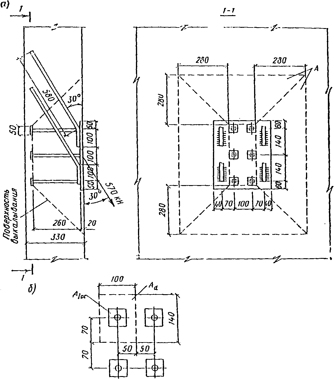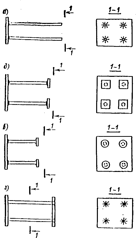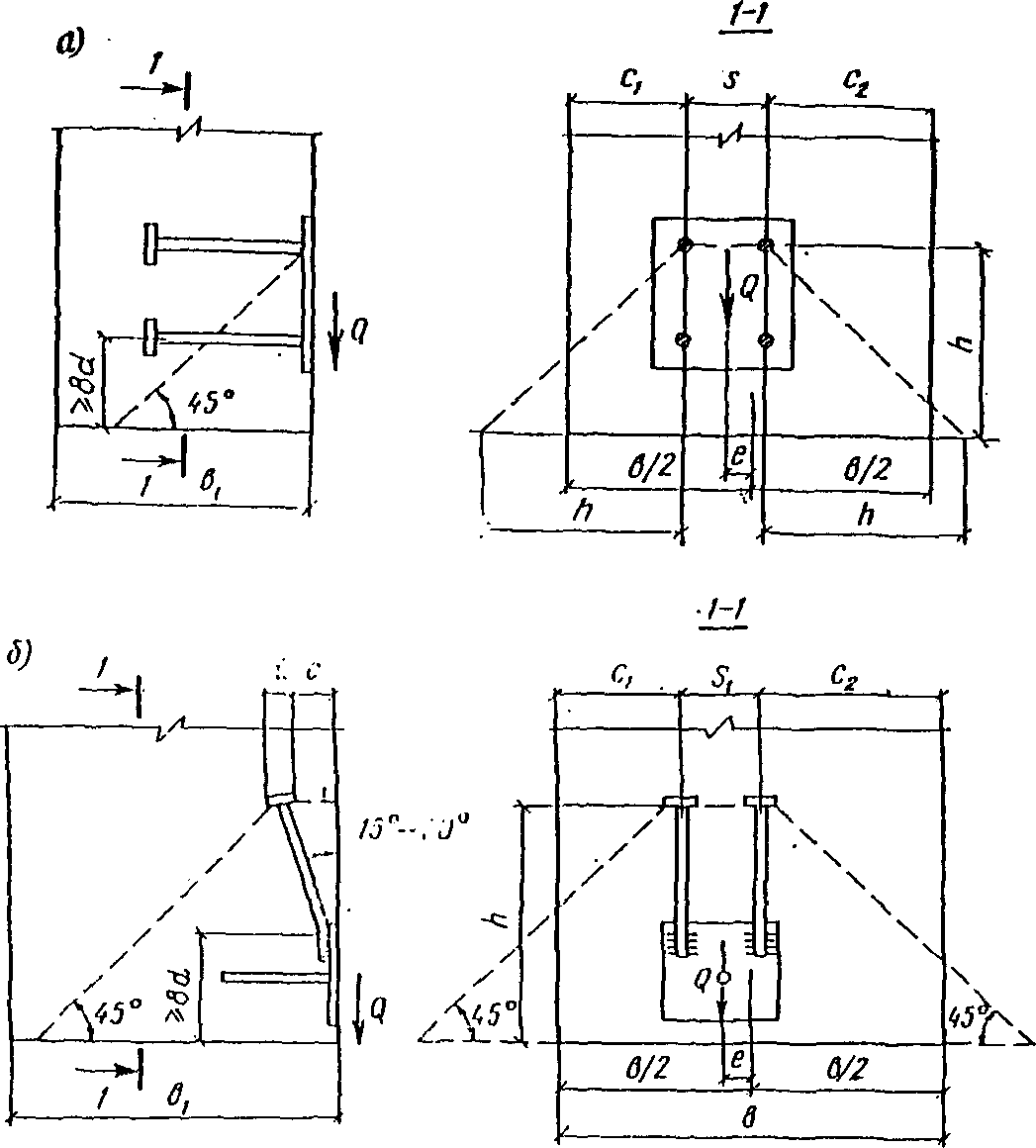 и нормальными; г - с наклонными анкерами, приваренными