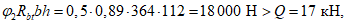 Q = 17 кН; Rbt = 0,85·1,05 = 0,89 МПа.