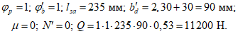 N' = 19 500 Н (см. выше) действует на участке штампованной закладной детали. Тогда по
