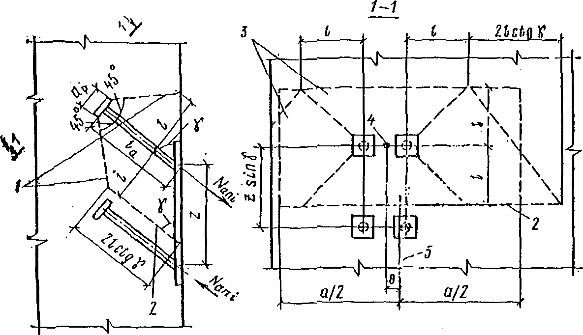 Aani | - | площадь сечения наклонных анкеров наиболее напряженного ряда; |