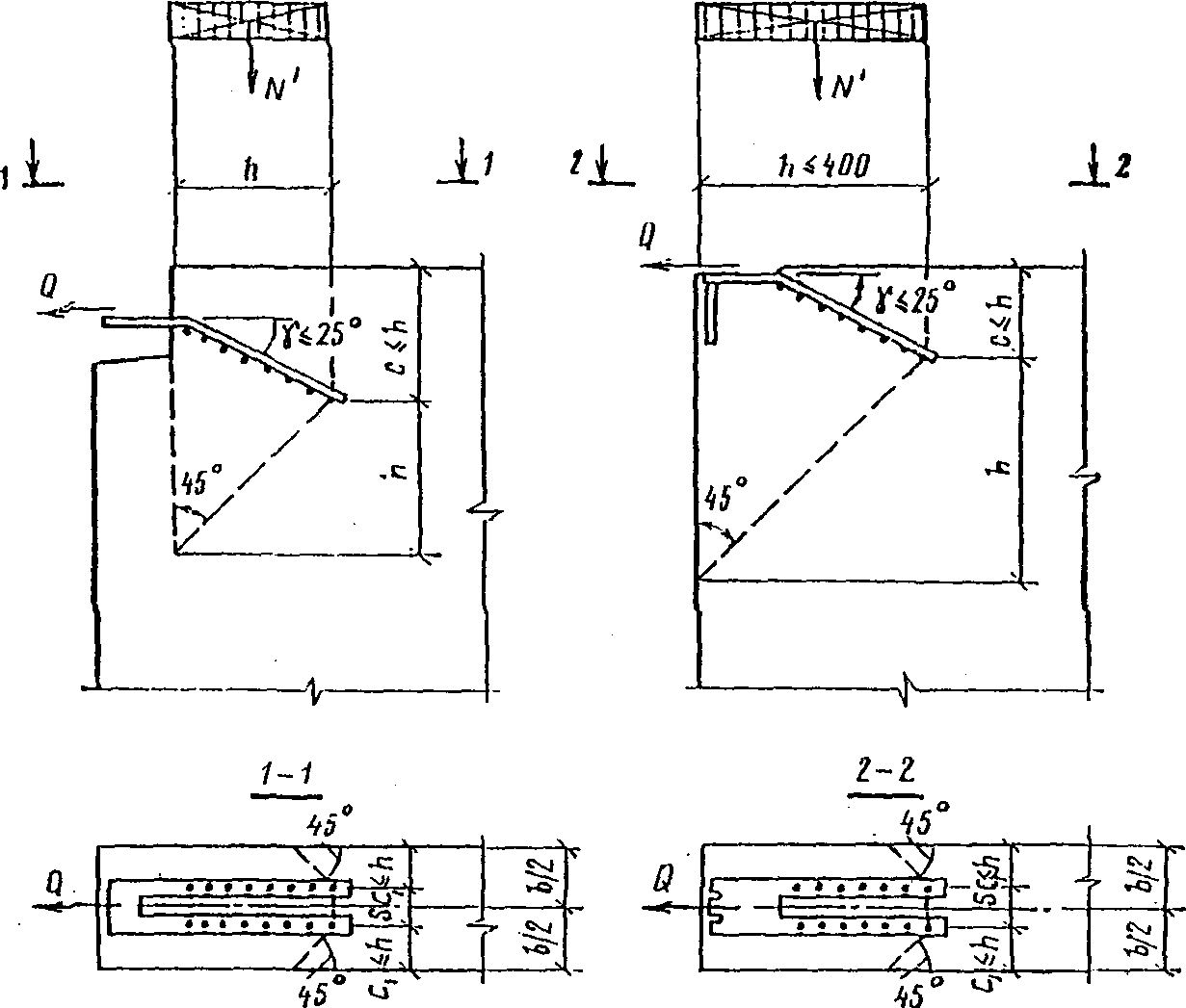 Предельное усилие на закладную деталь на стадии возведения здания принимается минимальным, равным Q = 11 200 Н (из расчета на раскалывание бетона).