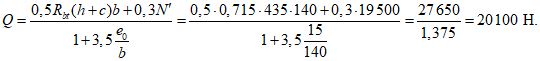 Q = 0,5Rbt(h + c)b + 0,3N' = 0,5·0,715·435·140 +