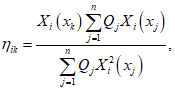X1(xn) и X1(xк) - ординаты форм колебаний масс здания по основному тону соответственно для верха здания и к-той массы;