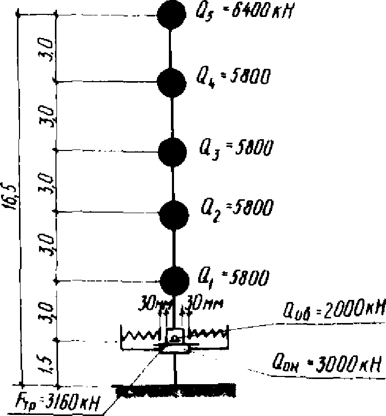 п. 2.2 б СНиП на наиболее опасные для района строительства расчетные сейсмические воздействия расчетные модели зданий регулярной структуры рекомендуется принимать в виде многомассовых или двухмассовых систем с элементами сухого или эквивалентного вязкого трения (рис. 23).