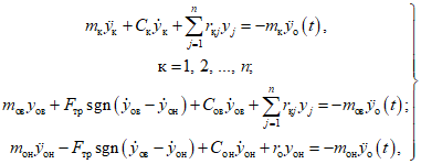 рис. 3) уравнения колебаний масс имеют следующий вид