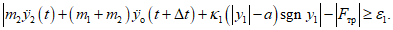 16). Уравнения колебаний на этапах 1 (до скольжения по поясу или "залипания") имеют вид